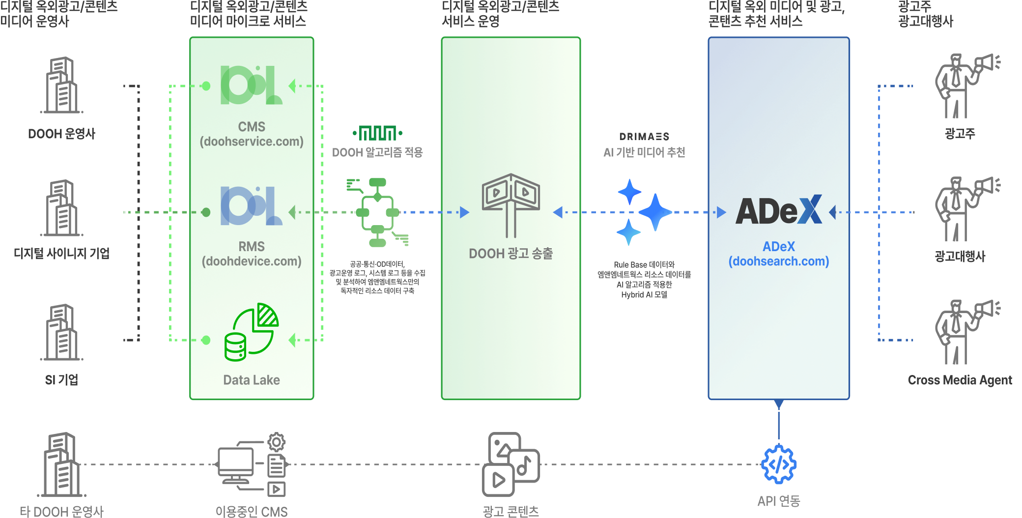 광고주, 미디어사, 디바이스 관리자 모두가 효율적으로 연결되는 통합 플랫폼 D’ooh(:디'우)를 통해 새로운 가치를 창출합니다.